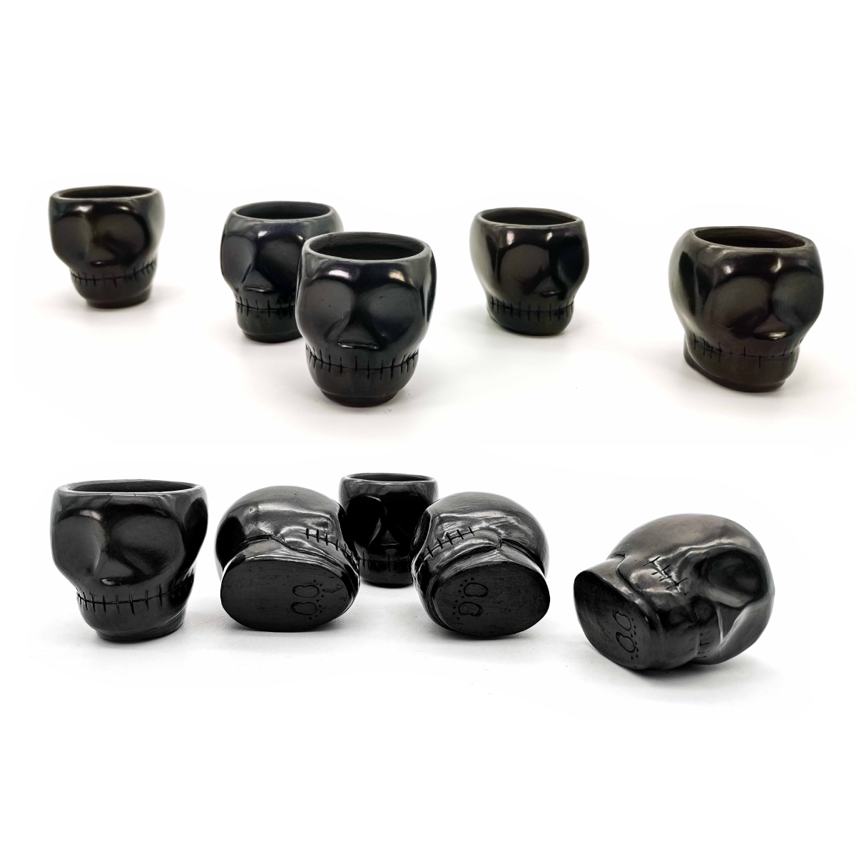 Kit de 10 copas mezcaleras calaverita de Barro Negro